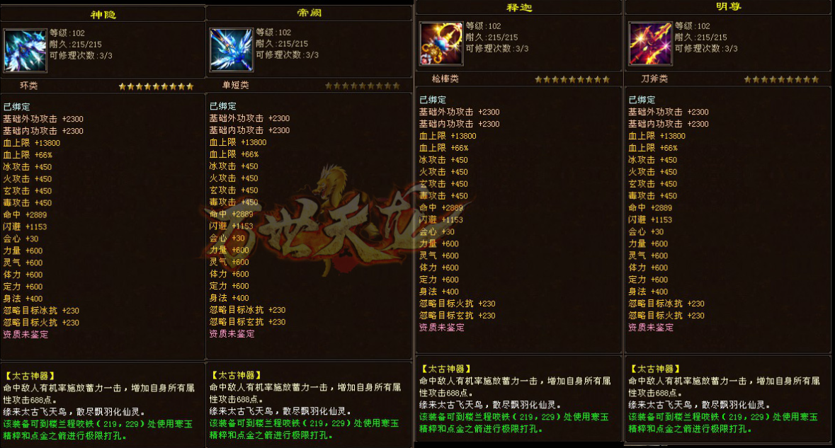 3.【钧天城BOSS】掉落1万增点票、5万增点票、、紫薇灵魄、冰髓药灵、真元灵魄、金蚕丝、精金石、神元粹、离火