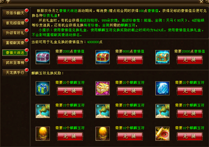 4.混江龙:20金币+5万增点票+15朵玫瑰+玄机药尘